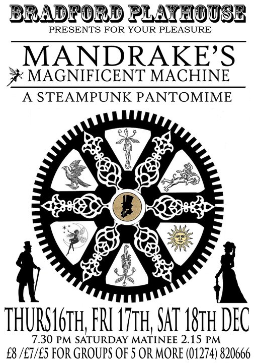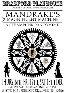 Its a play by the way in case you were wondering. An absurdist steampunk pantomime no less. We, a good and happy 30, put it on at the Bradford Playhouse this Christmas and it won't no community fudge either. It was more chaotic than a liberal conservative government and attracted almost as much attention.
