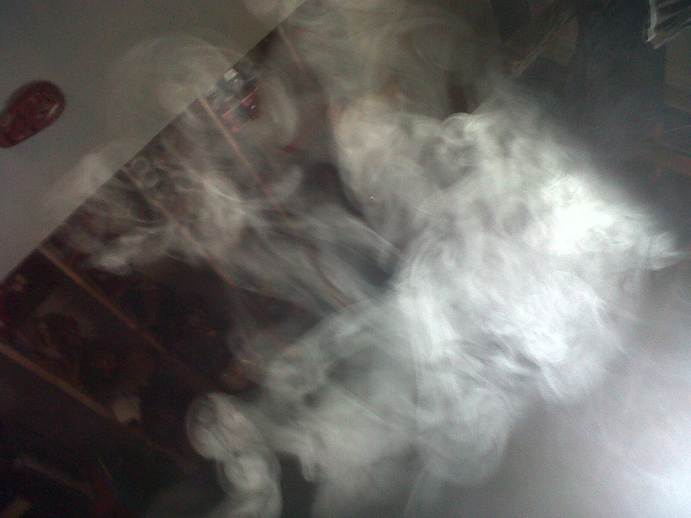 I love the shapes that smoke makes caught by hard light in still air. My brother Andrew has some gorgeous shots he took the previous winter one fine morning... was it something like 4 that you left the house to catch a numinous jack frost with your breath in the still icy night? Hoary ink blots. Smokey impressions aren't as healthy but certainly more comfortable. Special effects to rival poltergeist. Love.